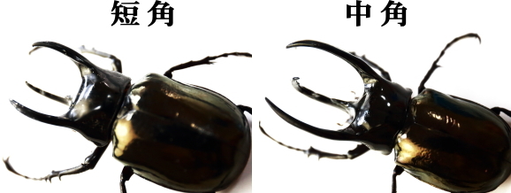太く大きく湾曲した胸角(上の角)!