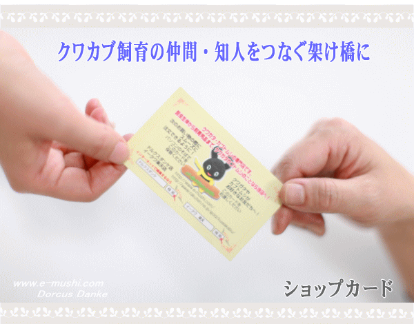 ドルクスダンケを知らないクワカブ飼育の仲間・お友達や知人方にショップカードを送りませんか?