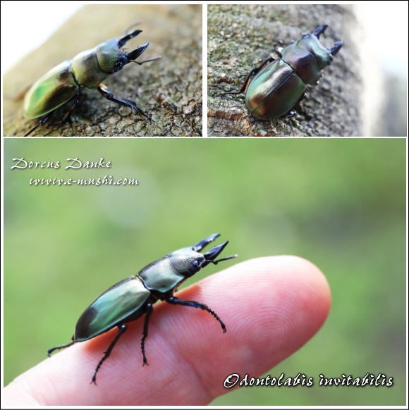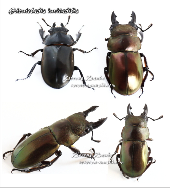 インビタビリスツヤクワガタは光源や角度によってブラウンまたはグリーンに見えます。