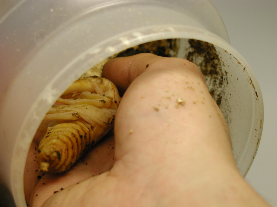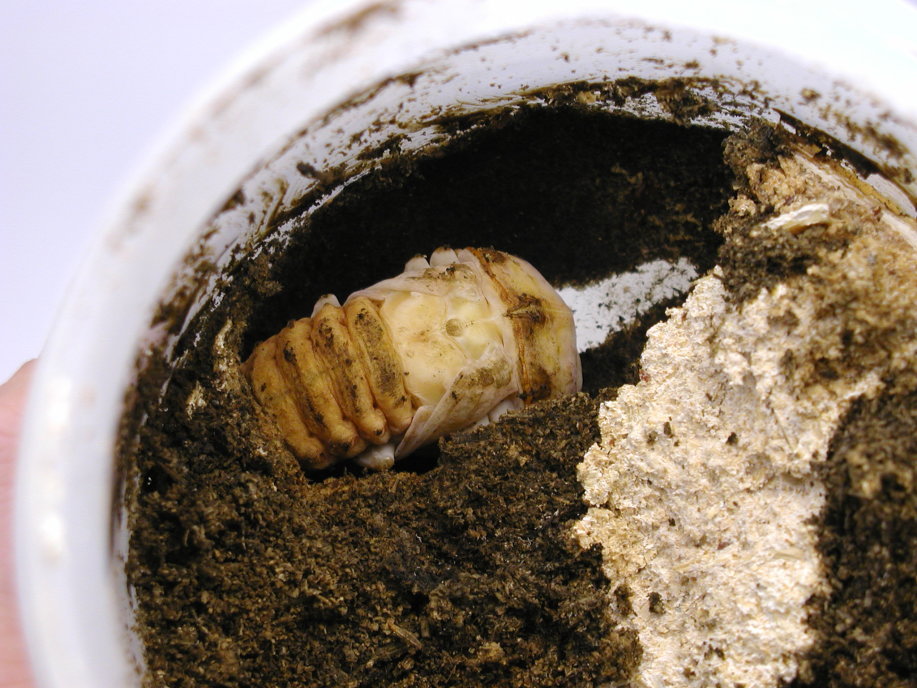 蛹室完成後でも、前蛹になる前(幼虫に張りがありシワが出ていない)の状態では、蛹室を作り直そうとしますので人工蛹室へは移動できません。