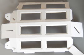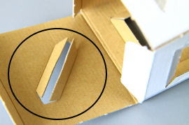 1 本体の3カ所の折り目を開き、上画像のように余分な外周部分と8カ所の開口を切り離します。