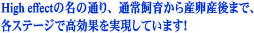 High effectの名の通り、通常飼育から産卵産後まで、各ステージで高効果を実現しています!