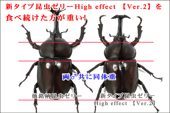 新タイプ昆虫ゼリーHigh effect 【 Ver.2】のみを食べた個体の方が重い!!