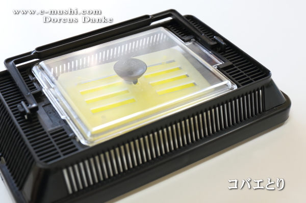 ・強粘シートのはくり紙をはがし、コバエとりケースにセットしてください。