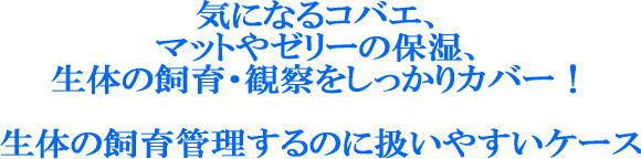 ●乾燥しがちのマットや昆虫ゼリーに適度な湿度を保ち、水分ロスが少なく霧吹きなどはほとんど不要になります。