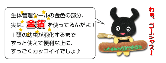 十分な名前・セットの日付や,体重など記入欄が4ヵ所あり1枚の管理シールで幼虫から成虫までお使いいただけます。