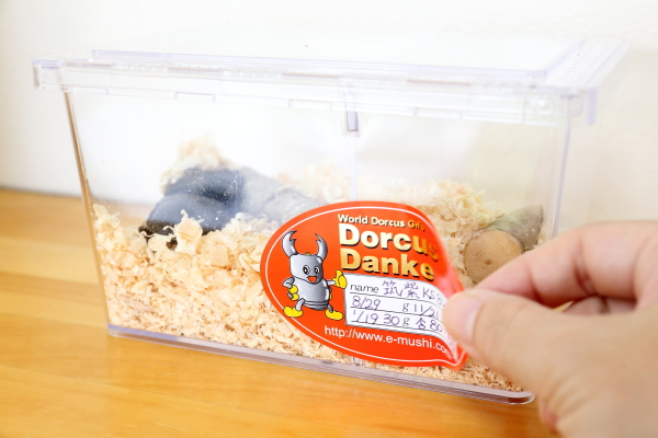 例えば、飼育ケースにマット交換をした日付などの覚えとして使用したり、そのまま、成長の記録として、ノートに貼ることも出来ます。