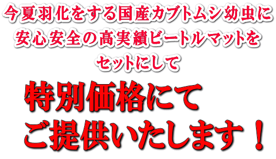 国産カブトムシ幼虫とカブトムシ幼虫飼育用昆虫マットをセットにして特価販売をしています。
