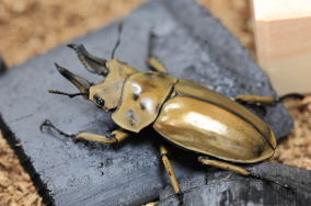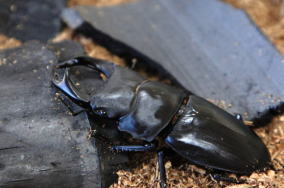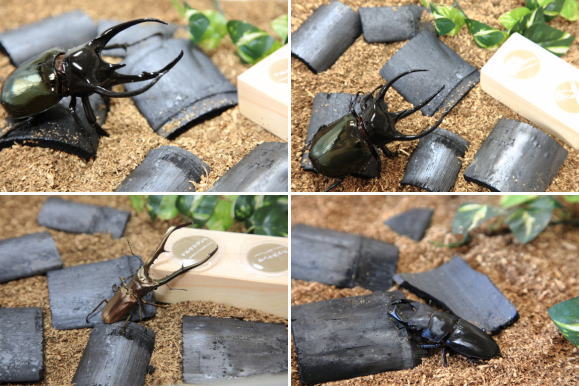 ■漆黒の竹炭がクワガタ・カブトの色彩を鮮やかに引き締めます。