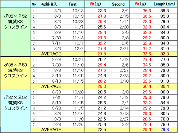 これまでの結果から、やはりブリードには同じ大型血統の中で早くから分かれた、異なるラインをどこかのタイミングで掛け合わせるクロスラインが有効だと考えます。