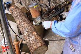 | 稙菌前の原木 | 原木に種菌を植え込む穴を開けます。 |